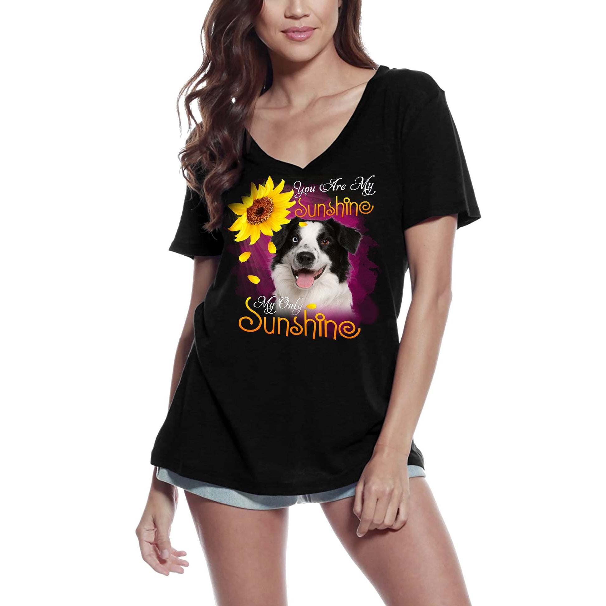 ULTRABASIC Women's V-Neck T-Shirt My Only Sunshine - Border Collie - Vintage Shirt