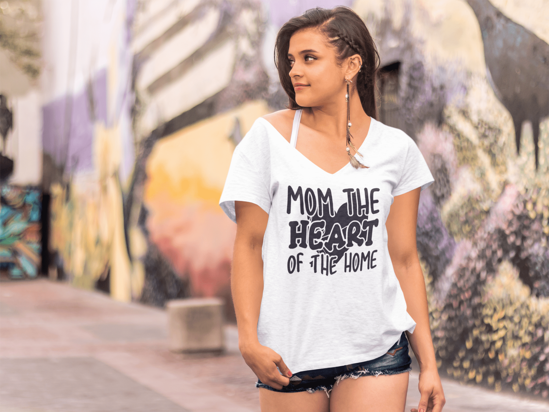 ULTRABASIC Women's T-Shirt Mom The Heart of Home - Short Sleeve Tee Shirt Tops